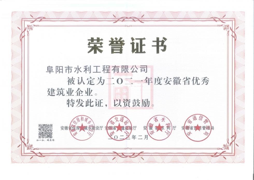 2021年度安徽省優秀建筑業企業